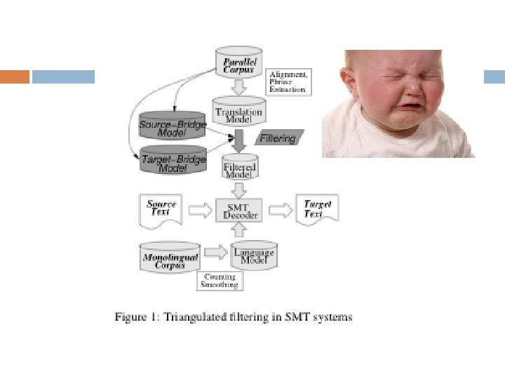 Triangulation Look at source-target phrase pair (S, T) S => X, T => X, S => T (keep) S => X, T => Y, S =/> T (drop) S => ? , T => ? , ? ? ? (keep)