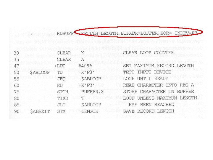 Avoid Uses of Labels in Macro • In RDBUFF and WRBUFF macros, many program-counter relative addressing instructions are used to avoid the uses of labels in a macro. – For example, JLT * - 19 • This is to avoid generating duplicate labels when the same macro is expanded multiple time at different places in the program. (will be treated as error by the assembler) • Later on, we will present a method which allows a programmer to use labels in a macro definition.