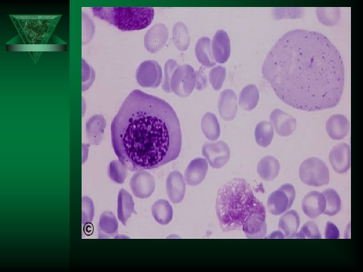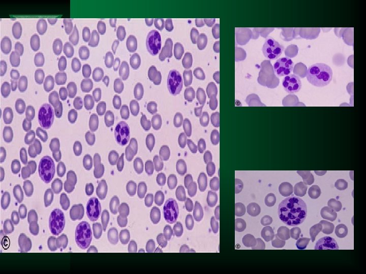 Screening hematology laboratory tests for megaloblastic anemia Ú CBC – Macrocytic anemia • MCV is usually >110 f. L and often >120 f. L • Pancytopenia is seen in some cases Ú Peripheral blood morphology – Oval macrocytes – Nucleated RBCs, Howell Jolly bodies, basophilic stippling, Cabot rings – Neutrophil nuclear hypersegmentation • five 5 lobed neutrophils per 100 WBC • One six lobed neutrophil