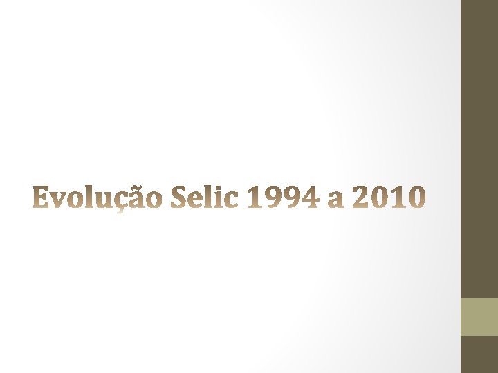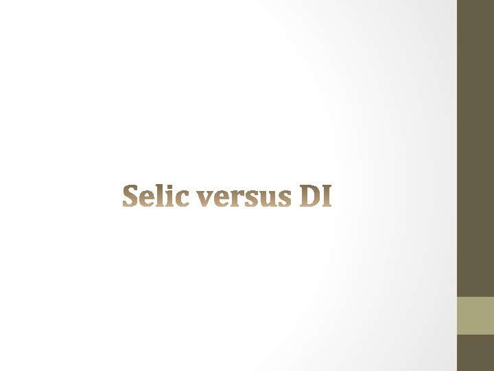 SELIC – o que é? • Selic: Sistema Especial de Liquidação e Custódia • Veja que é um SISTEMA informatizado que o BACEN utiliza para comprar e vender títulos públicos • A taxa Selic é uma média dos títulos negociados nesse ambiente
