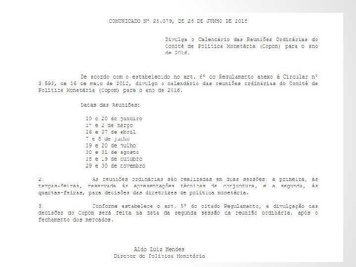 VAMOS DAR UMA OLHADA NO ÚLTIMO COMUNICADO DO COPOM, DIA 19/10/2016 CLIQUE AQUI