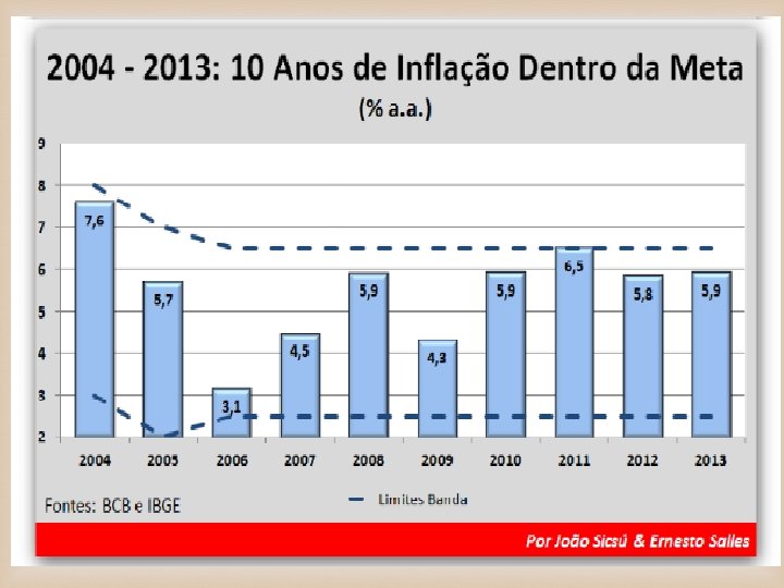 Estabilidade do nível geral de preços (controle da inflação) - inflação controlada não significa inflação zero; - inflação alta acarreta distorções, principalmente, sobre as classes baixas e sobre as expectativas. Tipos de inflação: • demanda • custos • inercial Inflação: aumento contínuo e generalizado do nível geral de preços.