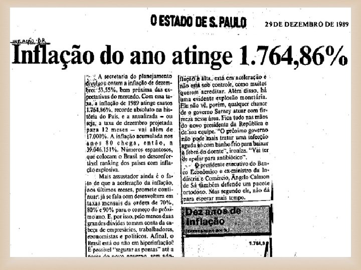 Instabilidade de preços - CP Causas Aumento excessivo de meio de pagamento Velocidade da circulação monetária Déficits orçamentários Abusos na obtenção do crédito Política Tributária Balança de Pagamentos deficitária