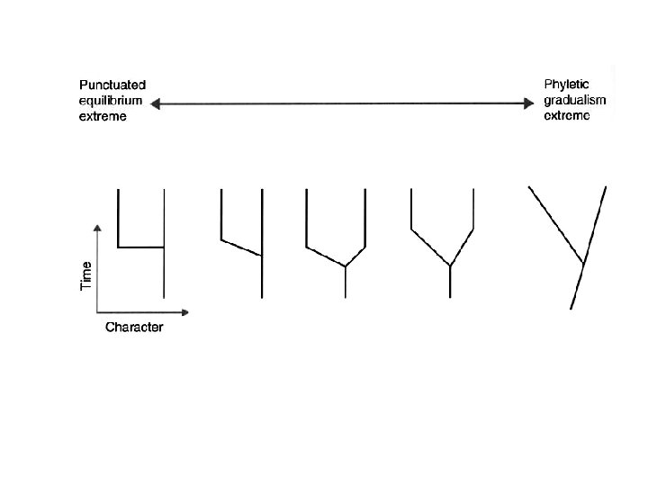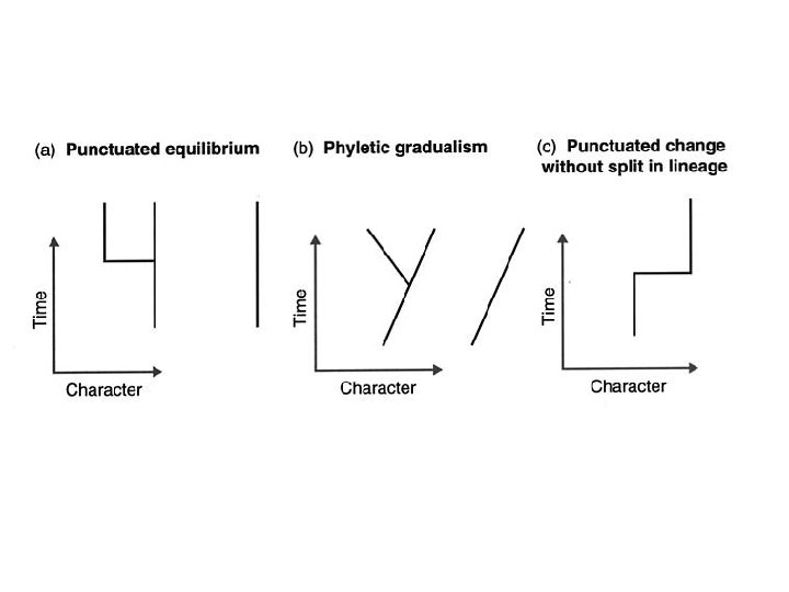 Punctuated Equilibrium Niles Eldredge -- Stephen Jay Gould Extreme Version All morphological change occurs at speciation Thereafter there is no change