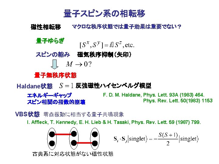 量子効果の検索 (NMR) Sr. Cu. BO 3 K. Kodama, M. Takigawa, H. Horvatic, C. Berthier, K. Kagenyama, Y. Ueda, S. Miyahara, F. Becca, and F. Mila, Science 298 (2002) 395.