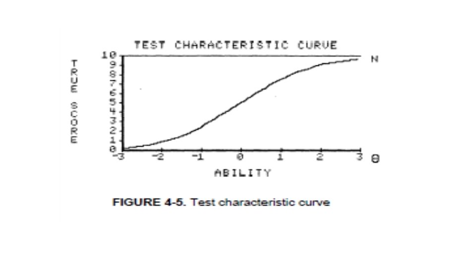 TEST KARAKTERİSTİK EĞRİSİ NEDİR? • TKE gözlenen ham puanları yeteneğin (θ) bir fonksiyonu şeklinde gösterir (Demars, 2010, 22). • θ ve gerçek puanlar arasındaki ilişki toplam karakteristik fonksiyonu veya test karakteristik fonksiyonu olarak ifade edilir(De Ayala, 2009, 96)