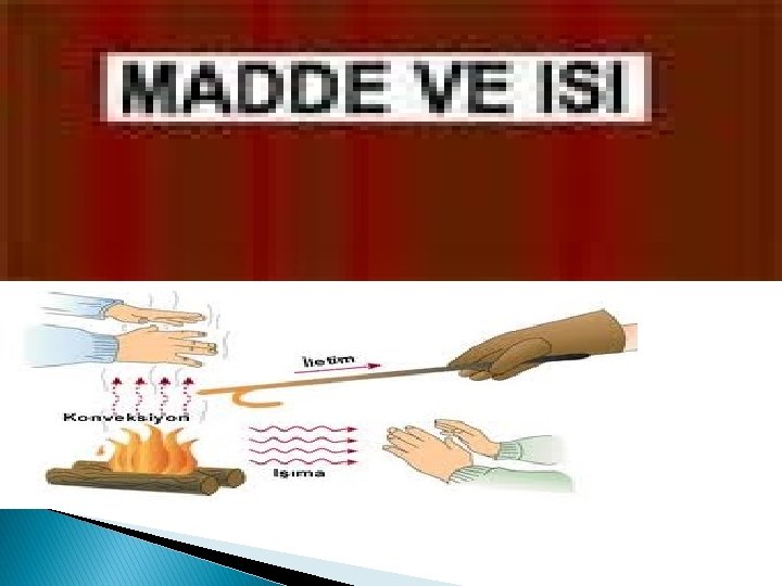 � ISININ YAYILMASI Isı; katı sıvı ve gaz maddelerde üç yolla yayılır. 1. İletim 2. Taşıma (Konveksiyon) 3. Işıma (Radyasyon