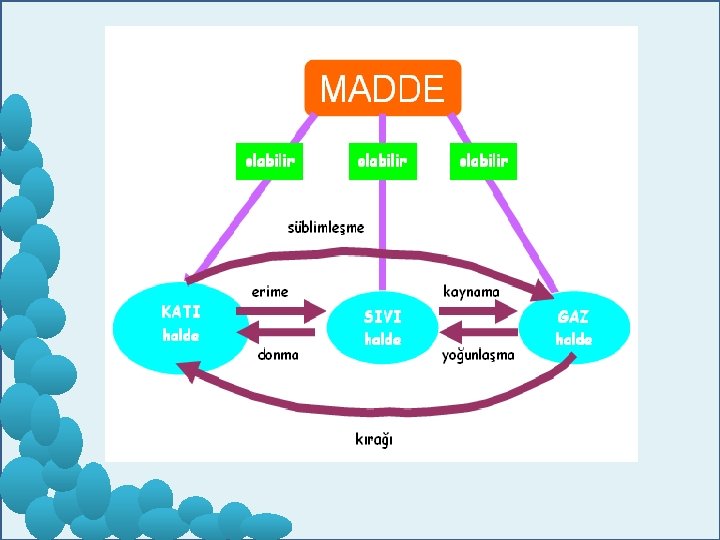 • Kaynama Noktası Bir maddenin sıvı halden Gaz haline geçmesidir. Sıvılar için ayırt edicidir. • Yoğunlaşma Noktası Bir maddenin gaz halinden sıvı hale geçmesidir. Gazlar için ayırt edicidir. • Süblinleşme Bir maddenin katı halden gaz haline geçmesidir. Katılar için ayırt edici özelliktir.
