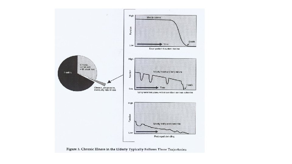 New Patterns of Dying in the 4 th Age Prolonged Dwindling: Dementia • The age-standardised rate of deaths with any mention of dementia has increased 40%, from 106 per 100, 000 persons in 2001 to 188 per 100, 000 persons in 2014. • A higher proportion of women die with dementia compared to men and a higher proportion of deaths with dementia occur in older age groups; the average of death for people with a mention of dementia is 86 years. • A higher proportion of women die with Alzheimer’s disease and unspecified dementia, a similar proportion of men and women die with vascular dementia. • Nearly two-thirds of deaths with a mention of dementia for people aged 65 and over occur in care homes. This is in contrast to a quarter of all deaths for people aged 65 and over. • People with dementia are less likely to die at home (8%) compared to all deaths for people aged 65 and over (21%). • Respiratory disease, circulatory disease and malignant cancers were also a mention for 38%, 36%, and 9% of all deaths with a mention of dementia, respectively. (PHE, 2016)