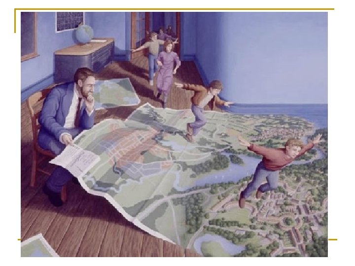 Characteristics of Magical Realism n n n A magic which cannot be explained by typical notions of natural law. A realist description that stresses normal, common, every-day phenomena, which is then revised or "refelt" by the marvelous. Extreme or amplified states of mind or setting are often used to accomplish this. It causes the reader to be drawn between the two views of reality. These two visions or realms nearly merge or intersect. Time is both history and the timeless; space is often challenged; identity is broken down at times.