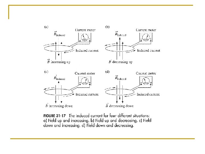 What Happens Here? n n n Begin to move handle as shown. Flux through the loop decreases. Current is induced which opposed this decrease – current tries to re-establish the B field.