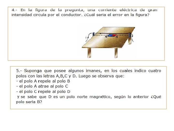 3. - Un conductor de 30 cm de longitud, se encuentra suspendido horizontalmente dentro de un campo magnético de B=0, 1 T. a) Si se hace circular una corriente de i=10 A de C a D, determina la fuerza magnética sobre el conductor b) Sabiendo que la masa del conductor es de 20 gramos y que la constante de elasticidad del resorte es de K= 20 N/m. Determina la deformación del resorte