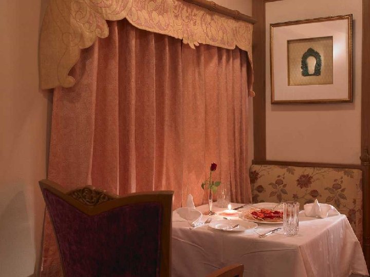 El tren tiene dos vagones restaurante, cada uno con una capacidad de 42 personas a la vez para que todos los huéspedes cenan juntos. Los restaurantes se llaman Rang Mahal y Mayur Mahal (el restaurante Peacock) tiene pavo real tema de pluma en su decoración. Menús de los restaurantes incluyen cocinas tradicionales de la India, junto con Continental, chino y cocina internacional.