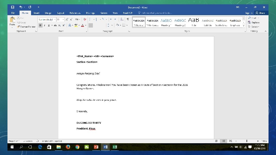 MAIL MERGE • A software toolkit used to produce multiple documents with a given template, editing the basic information that is supplied by a structured dataset. • Certificates of attendees in a seminar