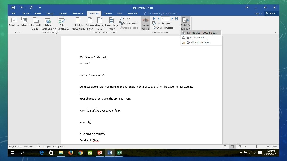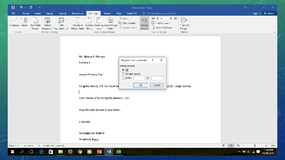 MAIL MERGE Select the option preview in the