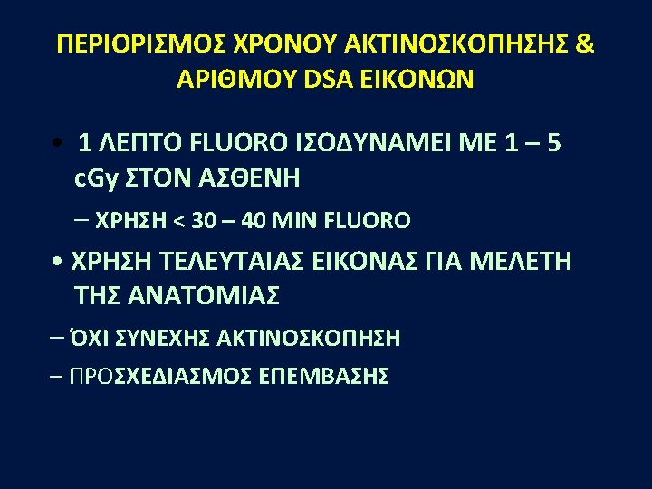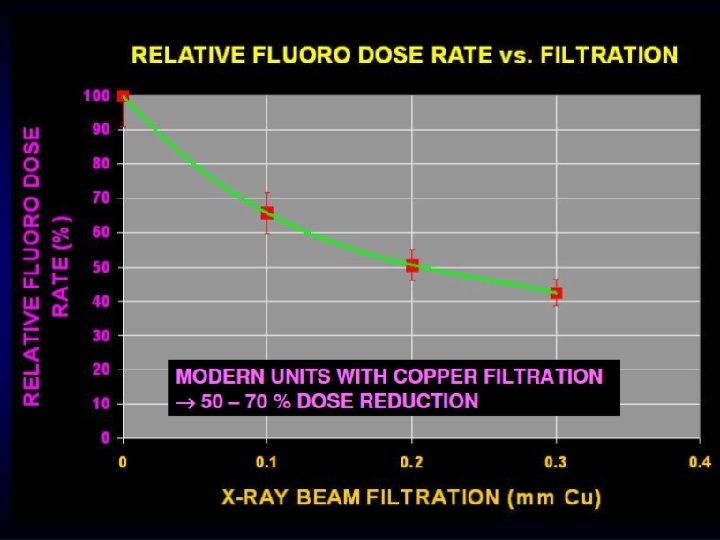 Fluoroscopy unit Radiation exposure • It varies greatly between different procedures • It is dependent on multiple factors. One factor is the fluoroscopy unit itself. • Radiation exposure is higher using portable Carms than fixed systems