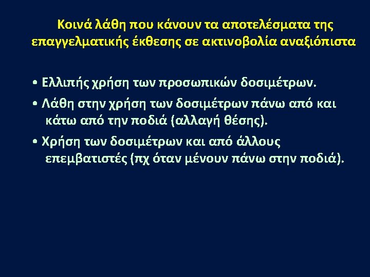 ΕΠΙΔΡΑΣΗ ΧΑΜΗΛΗΣ ΔΟΣΕΩΣ • Deterministic effects – Dose dependent – Presumed to have a threshold dose • Stochastic effects (e. g. DNA damage) – Leukemia – Thyroid cancer