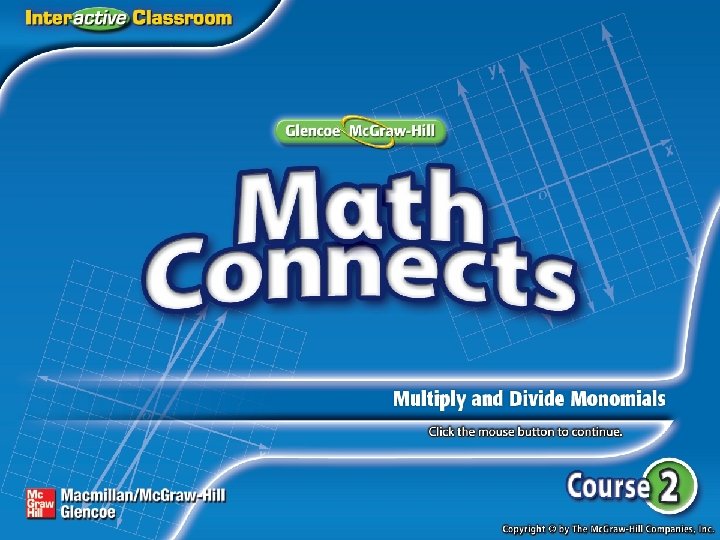 Main Idea and New Vocabulary Key Concept: Product of Powers Example 1: Multiply Powers Example 2: Multiply Monomials Example 3: Multiply Monomials Key Concept: Quotient of Powers Example 4: Divide Powers Example 5: Divide Powers Example 6: Real-World Example