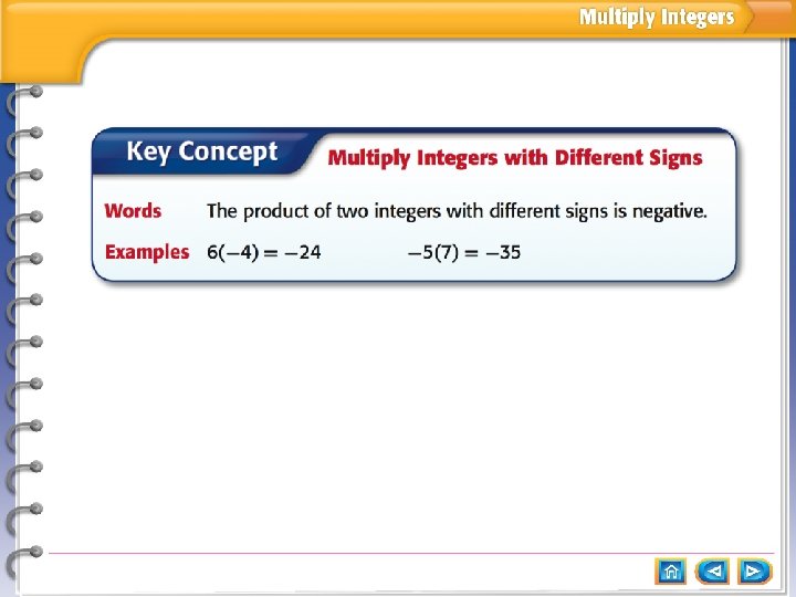 Main Idea Key Concept Multiply Integers with Different