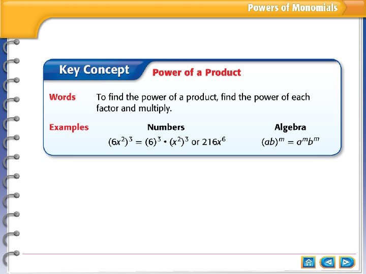 Main Idea Key Concept: Power of a Power Example 1: Find the Power of