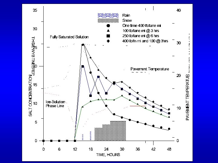 Two-Day Decision Support History Recommended Treatments Prediction Point #3 0. 40 Precipitation Rate (SWE) (in/hr) 0. 35 Ideal Time For Chemical Application 0. 30 0. 25 Ideal Time For Plowing Effort 0. 20 0. 15 0. 10 0. 05 Rain Mixed Snow 0. 00 0 Midnight Tuesday 3 6 9 12 15 18 21 24 27 30 33 Midnight Wednesday Time Since Awareness (hrs) 36 39 42 45 48 Midnight Thursday