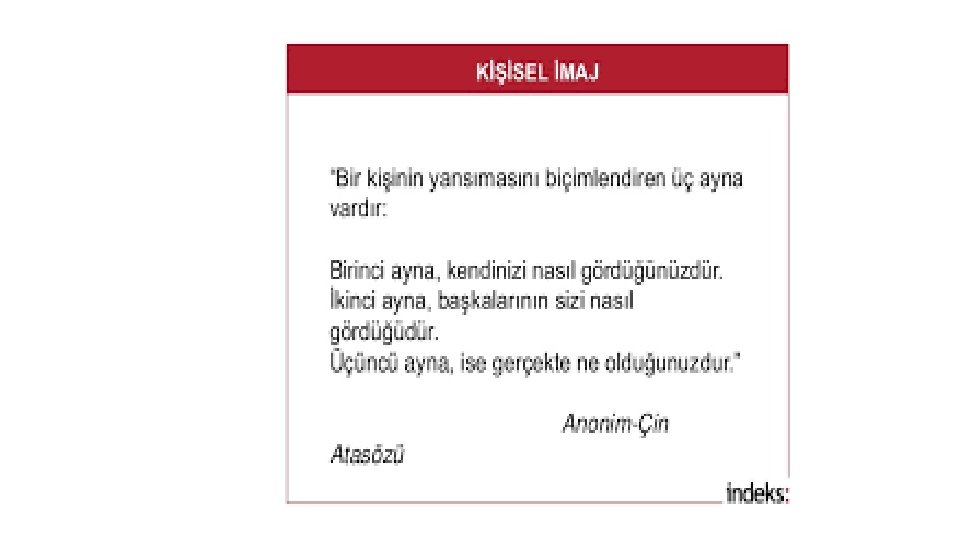 Kendi İmajımız İçin… Şimdi olmak istediğiniz yerde misiniz? Bunu değerlendirirken eğitim, deneyim, uzmanlık yanında unutulmaması gereken çok kritik gizli güç var: ØBaşkalarıyla iletişim ØKendimizle iletişim