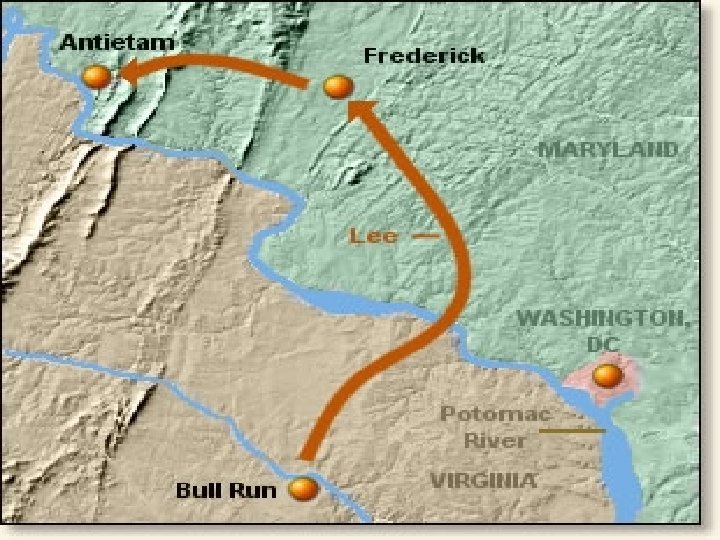 Antietam Sharpsburg Date State Leaders N/S Victor & importance of outcome Military draw; seen as political victory for Union Sept 17, Maryland 1862 George Mc. Clellan Bloodiest day of the war – 25, 000 casualties Mc. Clellan forced to Robert E Lee resign led to Emancipation Proclamation