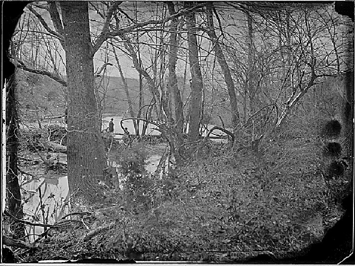 Looking across the Rappahannock River from the direction of the Union attack on Fredericksburg. Confederate forces had destroyed the bridges to make the crossing more difficult for the Union.
