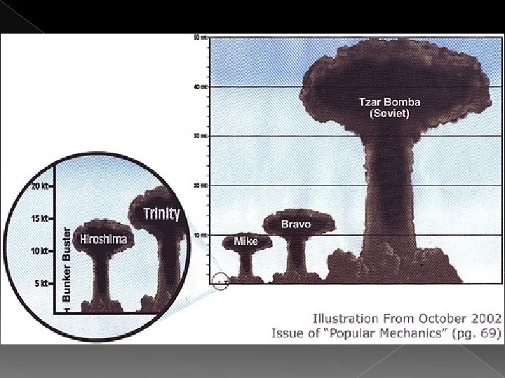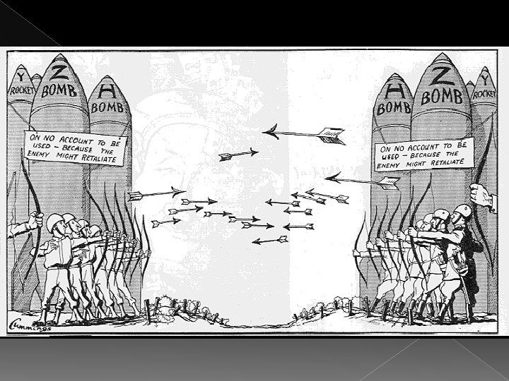 Arms Race 1945 – U. S. tests and uses the first atomic bombs 1949 – U. S. S. R. tests an atomic weapon 1952 – U. S. tests first H-bomb (hydrogen or thermonuclear bomb) 1953 – U. S. S. R. tests an H-bomb 1953 – U. S. Secretary of State John Foster Dulles begins “brinkmanship” › Threaten to go to the “brink” of war against the Soviet Union