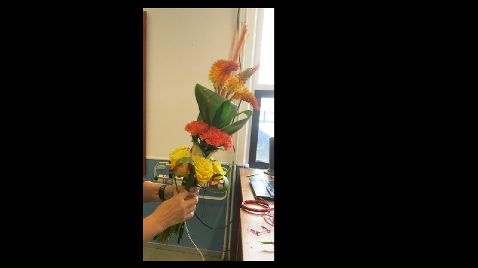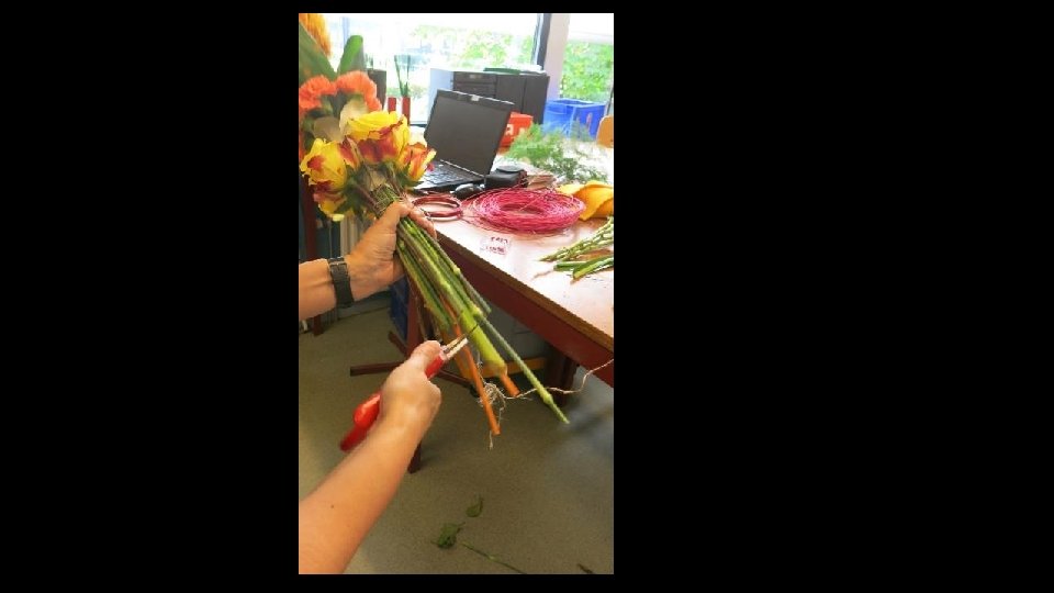 En het maakt het boeket wat luchtiger…. Dus maken we het er nu omheen en wordt ook weer vastgezet met touw.