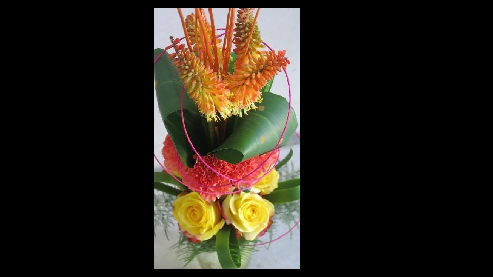 Maak de 3 vuurpijlen (Kniphofia) vast met touw, en dit zit veel hoger vast dan een normaal parallel gebonden boeket!