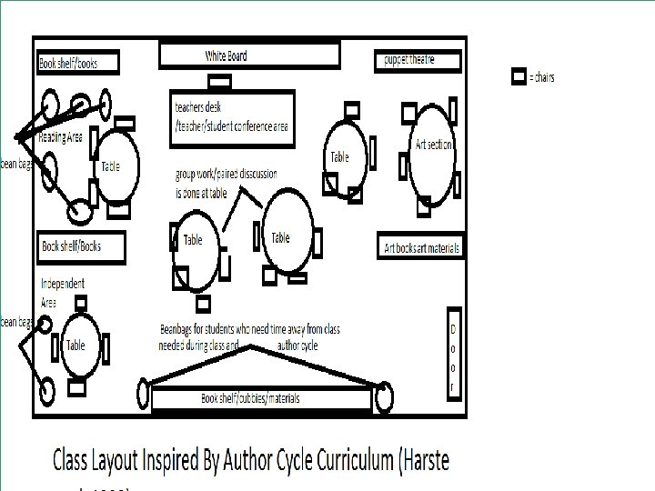 My Classroom u Ongoing cycle of learning centers: u Beginning with child’s experience u Building knowledge through reading, writing, speaking, artistic expression u Four main sections within classroom sections for: u Group work, independent work, art, teacher conference