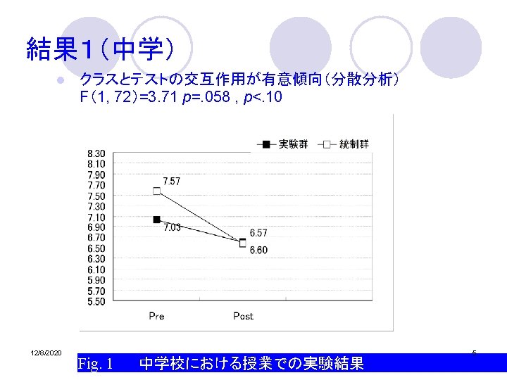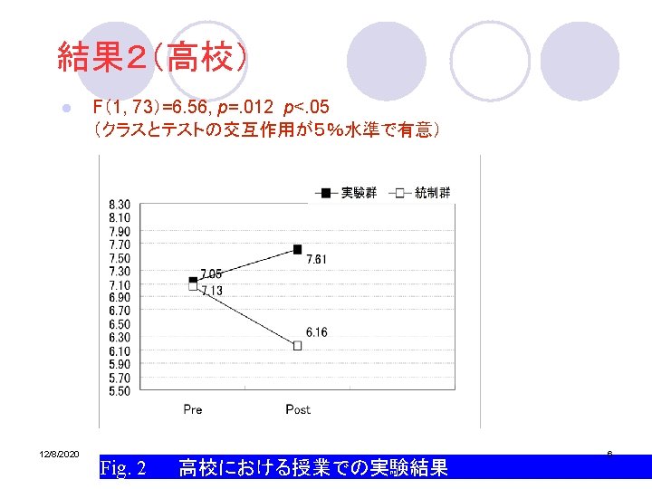 結果1 内容理解とクラスの交互作用 F(1, 74) = 2, 05 p=. 16 (n. s. ) 12/8/2020 Fig. 3 Listeningと音読後のReading Comprehension Test結果 12