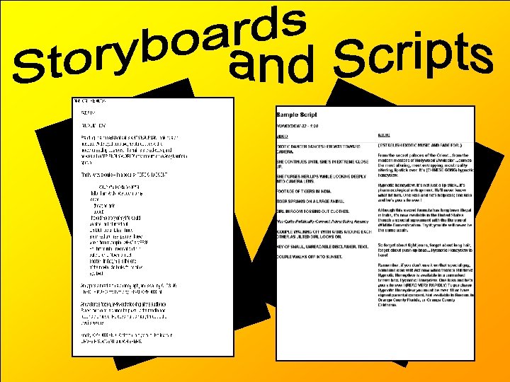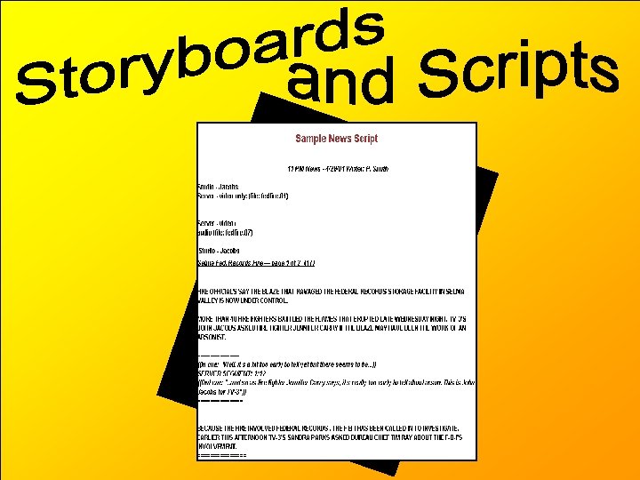 Written Scripts Only • Used for larger productions. • The storyboard previously created offers a visual summary. • Scripts provide more detail and precise instructions.
