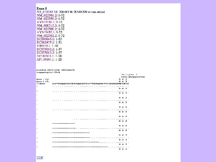 Introns • Introns are regions within a gene that don’t code for protein and don’t appear in the final m. RNA molecule. Protein-coding sections of a gene (called exons) are interrupted by introns. • The function of introns remains unclear. They may help is RNA transport or in control of gene expression in some cases, and they make it easier for sections of genes to be shuffled in evolution. But , no generally accepted reason for the existence of introns exists. • There a few prokaryotic examples, but most introns are found in eukaryotes. • Some genes have many long introns: the dystrophin gene (mutants cause muscular dystrophy) has more than 70 introns that make up more than 99% of the gene’s sequence. However, not all eukaryotic genes have introns: histone genes, for example, lack introns.