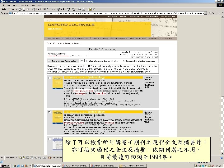 牛津大學 電子全文期刊 檢索指引 Making the most of… Oxford Journals Online Collection.