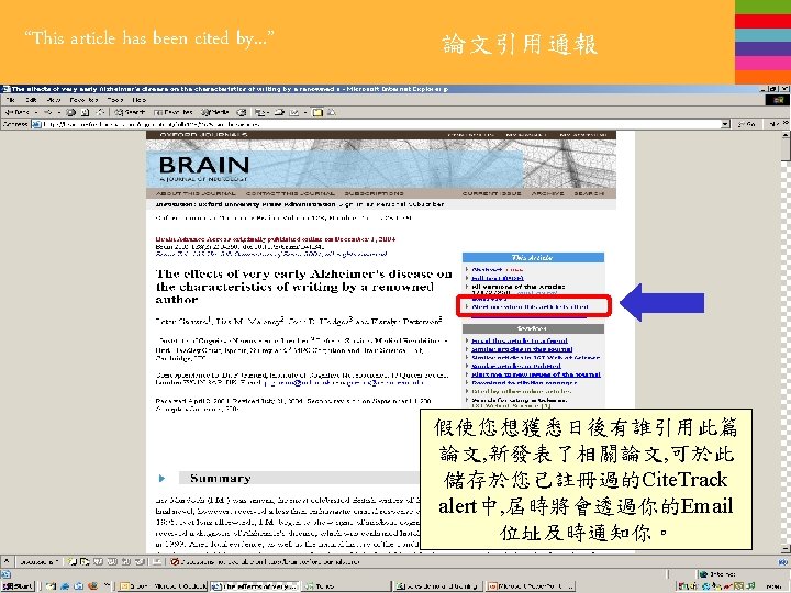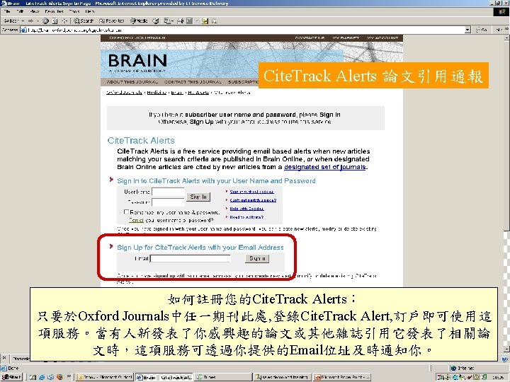 註冊 Cite. Track Alerts 論文引用通報 您也可於任一Oxford Journal之首頁註冊 Cite. Track Alert