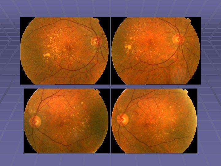 MAKULA HASTALIKLARI YAŞA BAĞLI MAKULA DEJENERESANSI EKSUDATİF SMD Başlangıçta asemptomatiktir. Çoğunlukla ani görme kaybı , distorsiyon ve santral skotoma yol açar ICG – FFA FK , fotodinamik tedavi , anti-VEGF