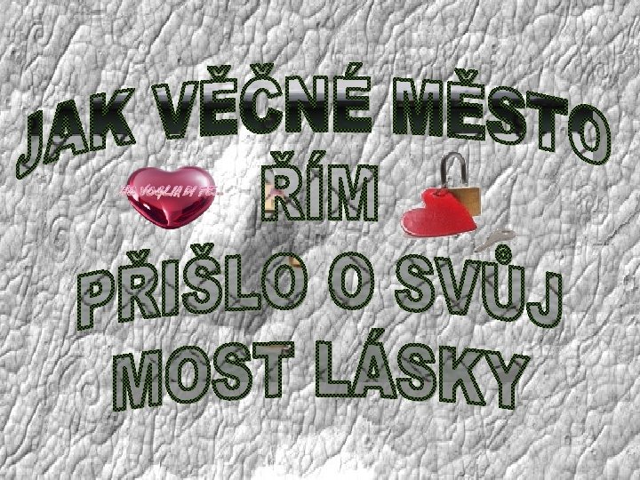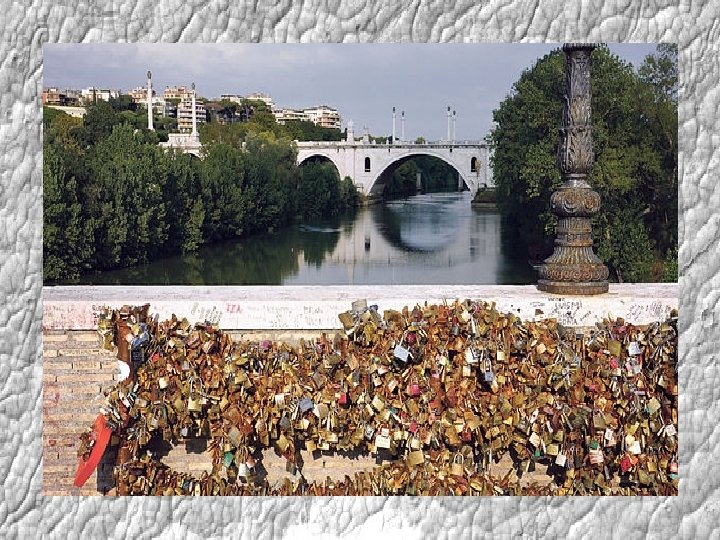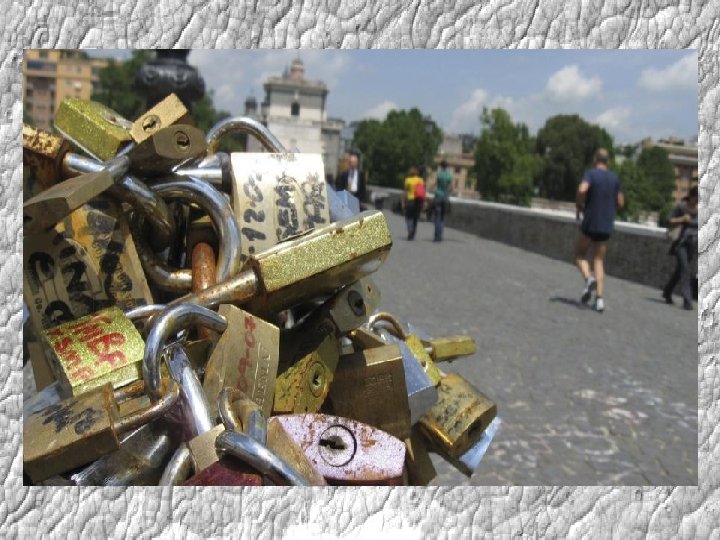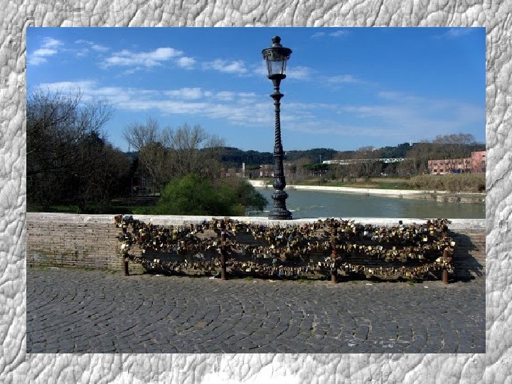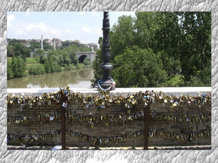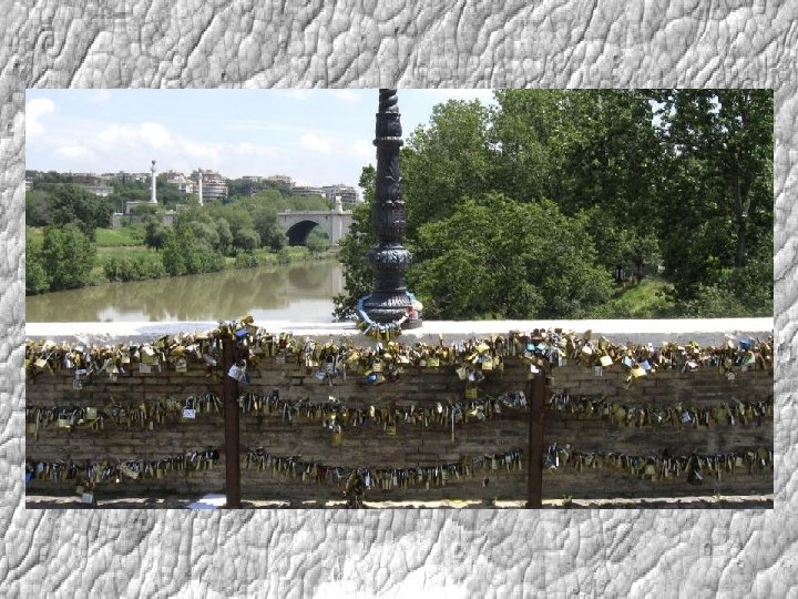 Zamilované z Říma nevyháníme „Je fakt, že tato tradice přilákala do města mnoho mladých. Není to vzkaz, aby přestali do Říma jezdit, jen budou zámky věšet jinde než na mostě, “ ujišťuje přítomné starosta Giacomini. Podle nejnovějších informací bude tradici vyhrazeno místo na římském pahorku Monte Mario u astronomické observatoře Zodiaco (Zvěrokruh). Kam však budou házet klíč na symbol nezvratného kroku, když ne do řeky, už starosta nevysvětlil. Valeria s Robertem si tuto otázku ale zatím nekladou. Mají jasno : „Zámeček pověsíme až tam, tak si aspoň budeme jistí, že naše láska vydrží! A proč nebýt první? Lásko, kde jsme zaparkovali motorku? “