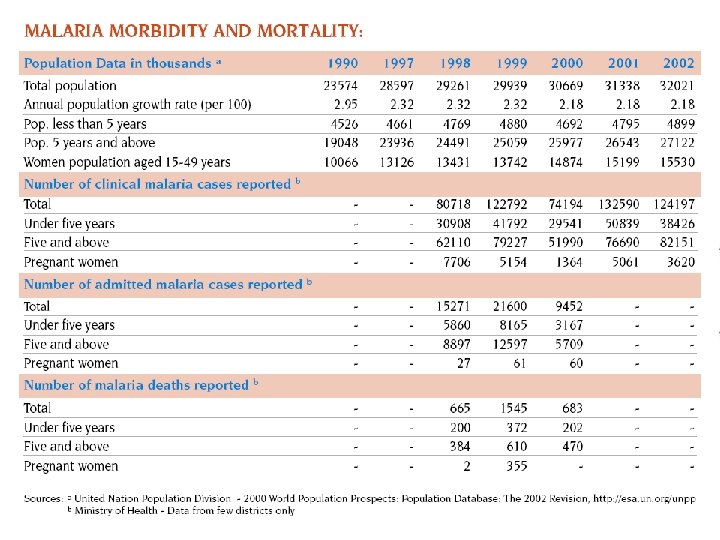 DEMOGRAPHIC AND SOCIO-ECONOMIC INFORMATION Population a: 32, 020, 244 (2002) Age structure a: ● 0 -14 years 43% ● 15 -64 years 54% ● 65 years and over 3% Population growth rate a: 2. 18% (2000 -2005) Life expectancy at birth (2000 -2005) a: ● Total population 49. 3 years ● Male 49. 9 years ● Female 48. 7 years Infant and child mortality (per 1000 LB) c, d: ● Neonatal mortality rate (1998) 28. 4 ● Infant mortality rate (2001) 78 ● Childhood mortality rate (1998) 40. 8 ● Under five mortality rate (2001) 122