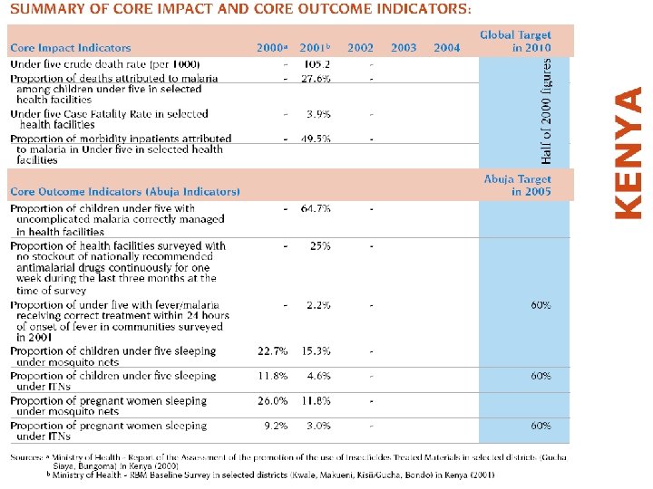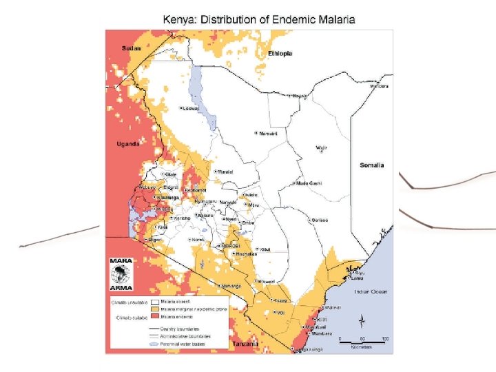 National Health Indicators (2000) : ● Per capita GDP in US dollars ● Total expenditure on health as % of GDP ● Per capita total expenditure on health in ● Per capita government expenditure on ● General Government expenditure on health as % of total general government expenditure ● Total national budget for malaria as % of total national health budget Global Fund support to fight Malaria: ● The Global Fund has approved an amount of US$ 10, 526, 880 for a period of two years for the project submitted by Kenya to address and reduce the impact of malaria. Number of districts in the country: b 1, 396 8. 3 115 26 8. 1 N/A 77 Sources: a United Nation Population Division - 2000 World Population Prospects: Population Database: The 2002 Revision, http: //esa. un. org/unpp b WHO Statistical Information System (WHOSIS): Country Official Health Indicators, http: //www. who. int/whosis c Human Development Report, UNDP (2003) d Demographic and Health Survey in Kenya (1998)