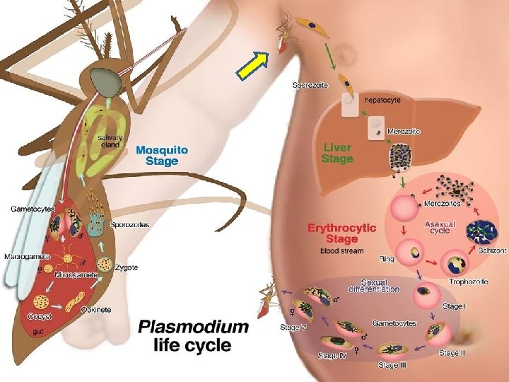 Life cycle * The first colonization takes place in the parenchymal cells of the liver where the sporozoites will pass through two schizogony, the first called (primary exoerythrocytic schizogony) the second one called (secondary exoerythrocytic schizogony) except in Plasmodium falciparum where the parasite passingle schizogony in the liver.