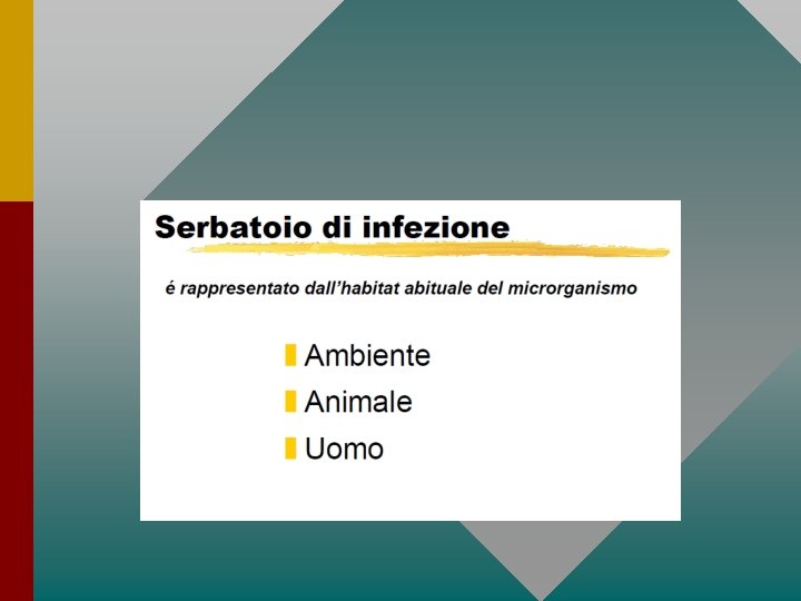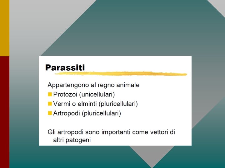 MALATTIE INFETTIVE • MALATTIA INFETTIVA : qualunque stato morboso a manifestazione locale o generale determinato da microrganismi patogeni (virus, schizomiceti, funghi, protozoi). • MALATTIA PARASSITARIA : stato morboso determinato da parassitismo da parte di metazoi.