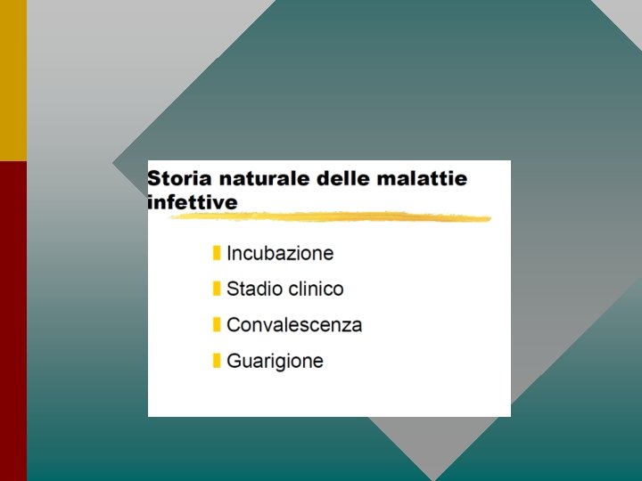 Presentazione della malattia, diagnosi, terapia • Sintomi soggettivi (avvertiti dal paziente) e obiettivi (evidenziati dal medico) • Diagnosi ( anamnesi, esame obiettivo, esami di laboratorio e strumentali) • Prognosi (previsione di durata e di esito) • Terapia (possibilità di modificare la storia naturale della malattia)