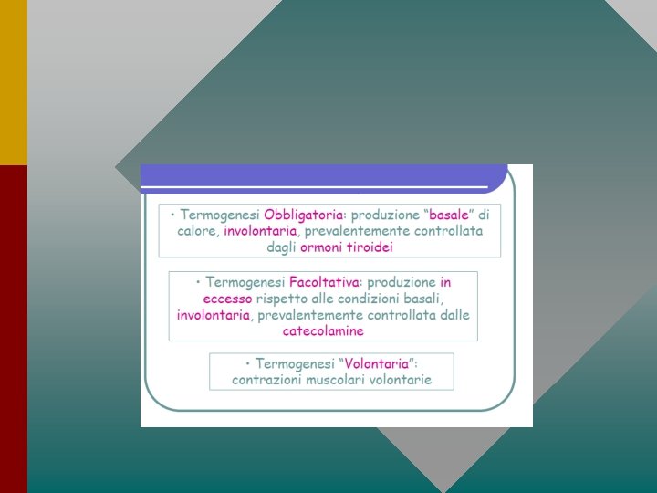 TERMOREGOLAZIONE 1 E’ la capacità di un organismo di mantenere costante la temperatura corporea entro determinati limiti, nonostante le variazioni di quella ambientale. E’ un equilibrio omeostatico tra la quantità di calore prodotto dall’organismo (termogenesi) e quella perduta ( termodispersione).