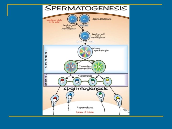 Male Reproductive System B) Regulate temperature (92 o. F/33 o. C) 2. Testes A) Site of spermatogenesis & hormone production B) Structures 1) Tunica albuginea – outer cell layer 2) Each testis is subdivided into lobules