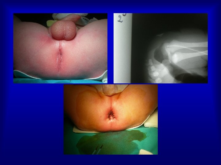 Malformazioni Ano-Rettali (M. A. R. ) MALFORMAZIONI ASSOCIATE • URO-GENITALI (RVU) 40% • SCHELETRICHE (anomalie vertebrali, tethred cord) 30% • INTESTINALI (atresia esofagea, Hirschsprung) 15% • CARDIACHE 9% • NEUROLOGICHE • POLMONARI 4%