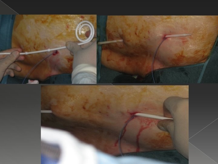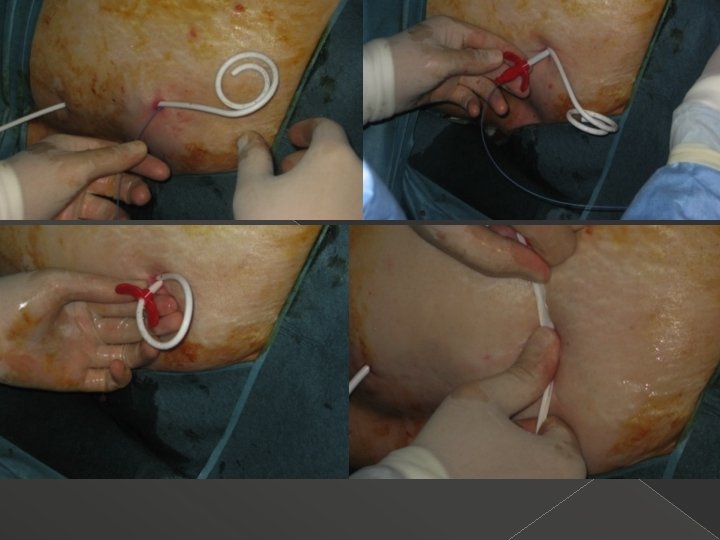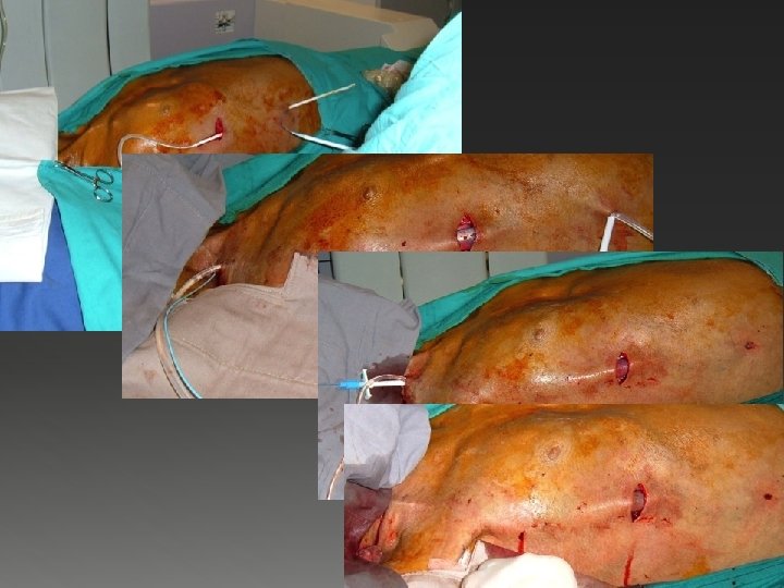 Tünelli Peritoneal Kateter � Literatüre göre 1 ay içerisinde 2 -3 defa yüksek volümlü parasentez ihtiyacı olması durumunda refrakter malign asit varlığından söz edilir. � Refrakter malign asit varlığında ilk seçenek olarak tünelli peritoneal kateter düşünülmelidir. � Kateterden kemoterapötik ajan verilebilir. � Tünel enfeksiyonu ve peritonit geç komplikasyonlardır. � İşlem sırasında 1 gr. İv sefazolin sodyum