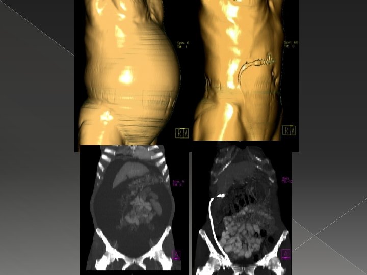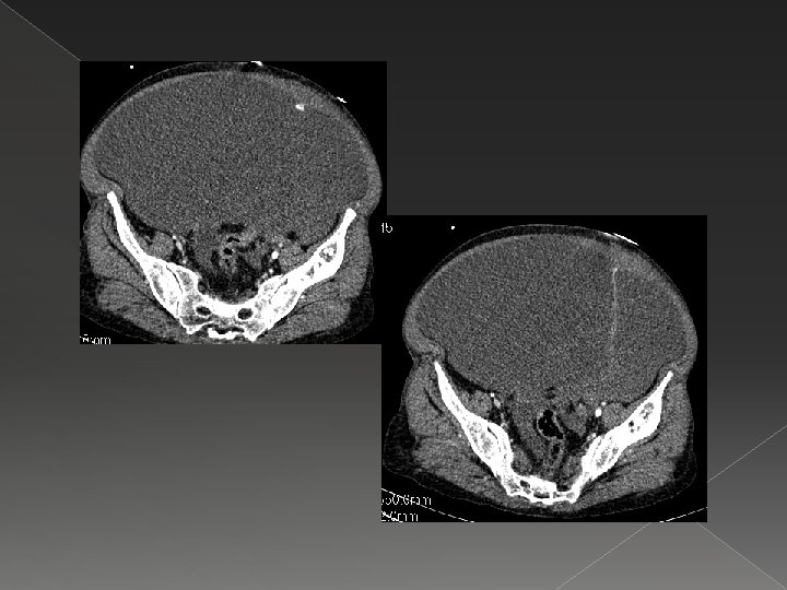 Malign Asit � Tanım: Peritoneal kavitede kanser kaynaklı anormal sıvı toplanması. � En sık sebepler meme, akciğer, over, mide, pankreas, kolon kanseri ve mezotelyomadır (Becker et al. 2006). � Yüksek volümde asit sıvısı abdominal basıncı artırır ve nefes darlığı, şişkinlik, bulantı, iştahsızlık, asit reflü, hareket kaybı , alt ekstremite ödemi ve fiziksel görünümden dolayı moral bozukluğu gibi semptomlara yol açar. � Malign asit gelişimi sonrası ortalama yaşam süresi 1 -4 aydır. Palyatif tedavi alan hastalarda yaşam süresi uzayabilir (Courtney et al. 2008). � Medikal tedavi (diüretik, tuz kısıtlaması) yararsızdır.