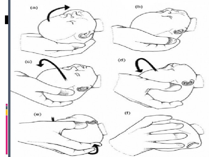 Management of the 2 nd stage of labour: 1. In most cases (70% ) provided that the uterine contractions are strong and the woman is able to make good expulsive efforts the occiput rotates forward and normal delivery takes place. 2. In other cases (10% ) the baby may be delivered face -to-pubes with out difficulty but there is a great risk of a perineal tear. large episiotomy may be required. 3. In about 20% of cases there is failure of the presenting part to rotate and descend –deep transverse arrest